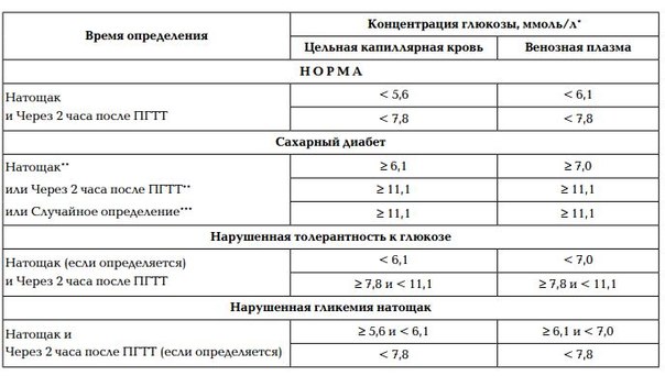 *Диагностика проводится на основании лабораторных определений уровня глюкозы.